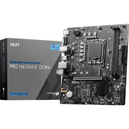 MSI PRO H610M-E DDR4 Motherboard, Micro-ATX - Supports Intel 12th Gen Core Processors, LGA 1700 x DIMMs (3200MHz), 1x PCIe 4.0 x16 Slot, 1 x M.2 Gen3, USB 3.2 Gen1, 1G LAN ₹8,999.00 Original price was: ₹8,999.00.₹6,389.00Current price is: ₹6,389.00.